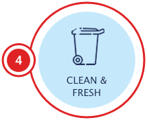We clean and sanitize trash bins using high-pressure hot water systems that remove bacteria, grime, and odors.
